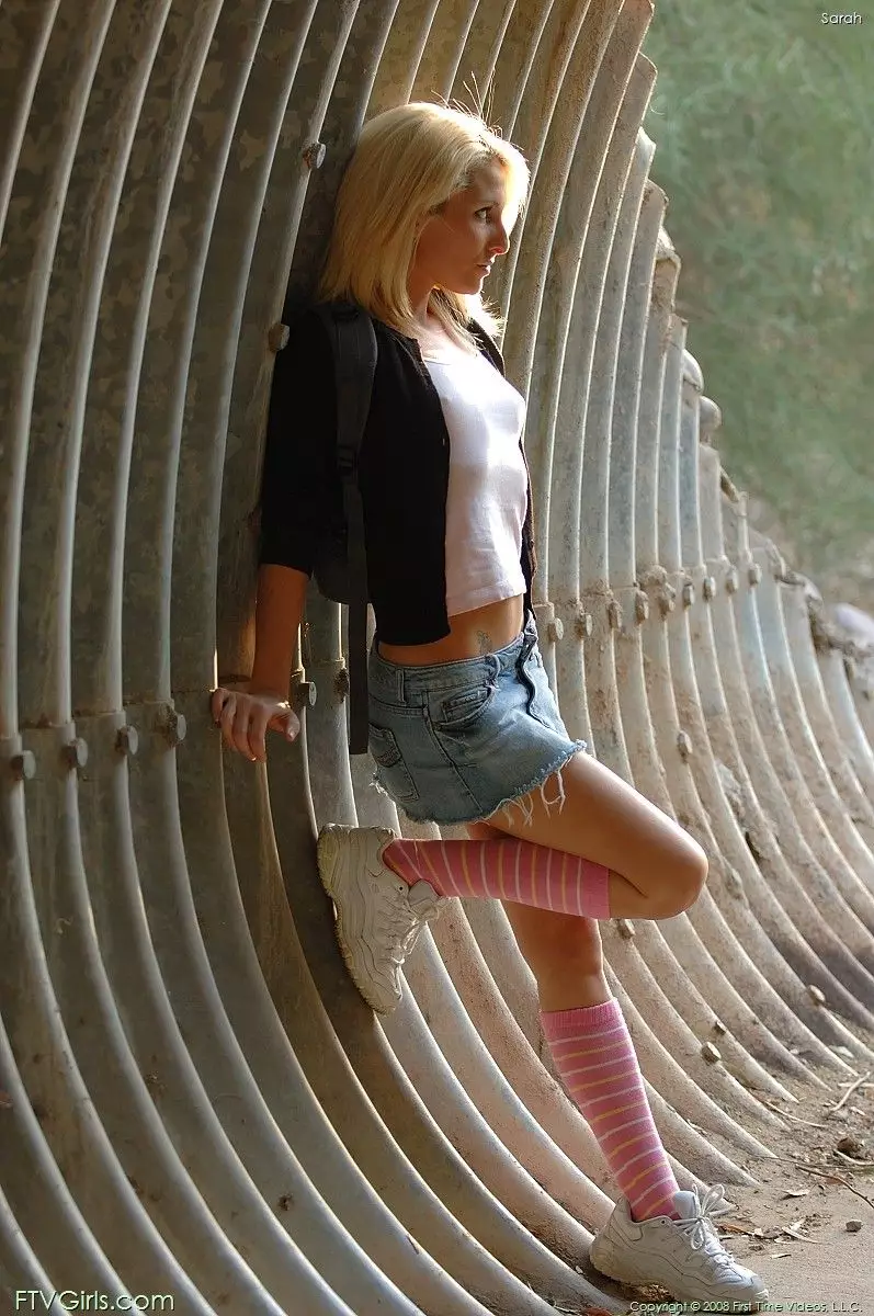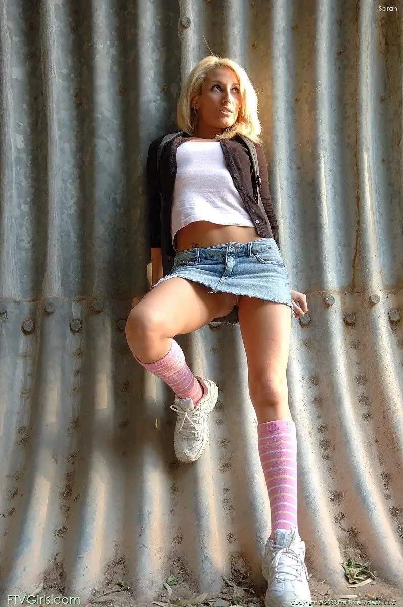 Светловолосая малышка Sarah FTV не носит белья под юбкой и показывает свою лысую киску на улице — Sarah FTV
