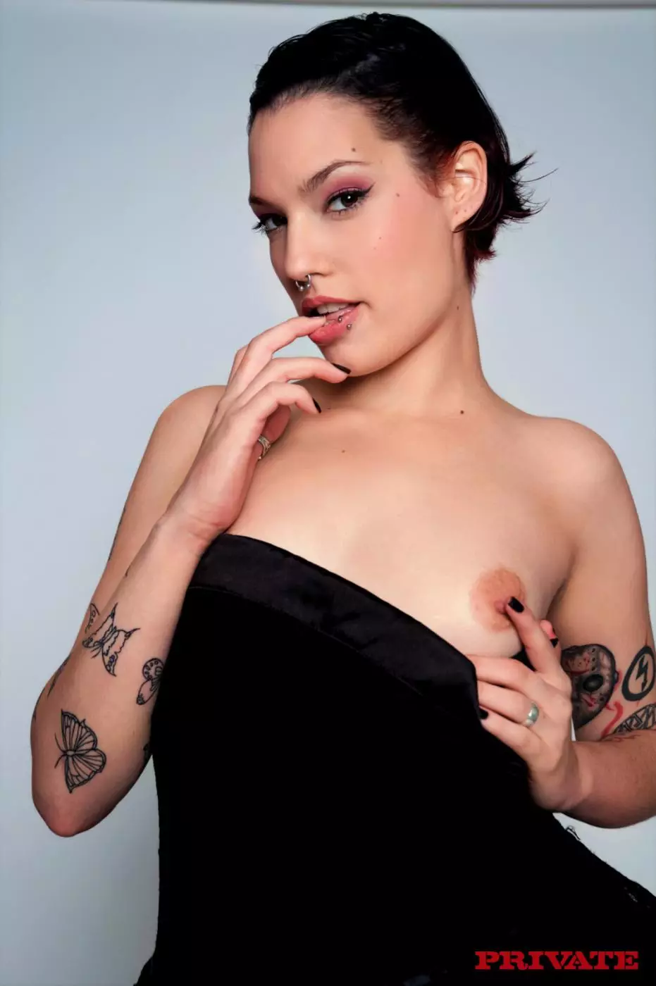 Мелкогрудая татуированная малышка Silvia Ruby с гладкой киской снимает платье и берется за хуй — Silvia Ruby