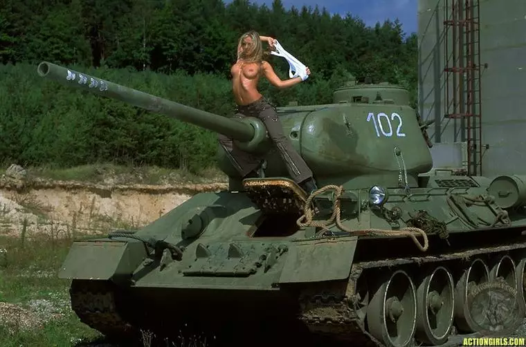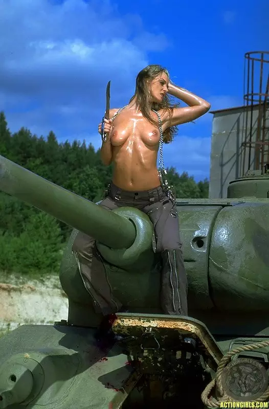 Длинноногая блондинка в черных ботинках Silvie Thomas показывает свое идеальное тело на танке — Silvie Thomas