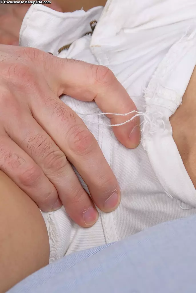 Малышка с бритой киской Simone Lopez снимает свои розовые трусики и сосет, а потом трахается — Simone Lopez