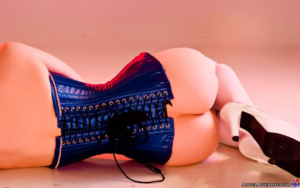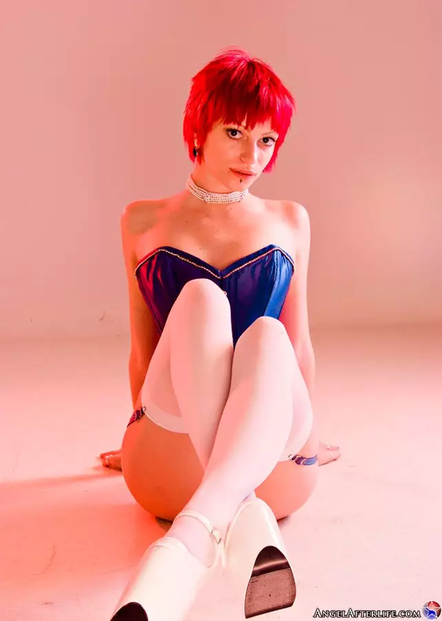 Нахальная рыжая милашка Siobhan Afterlife позирует в синем корсете и белых чулках — Siobhan Afterlife