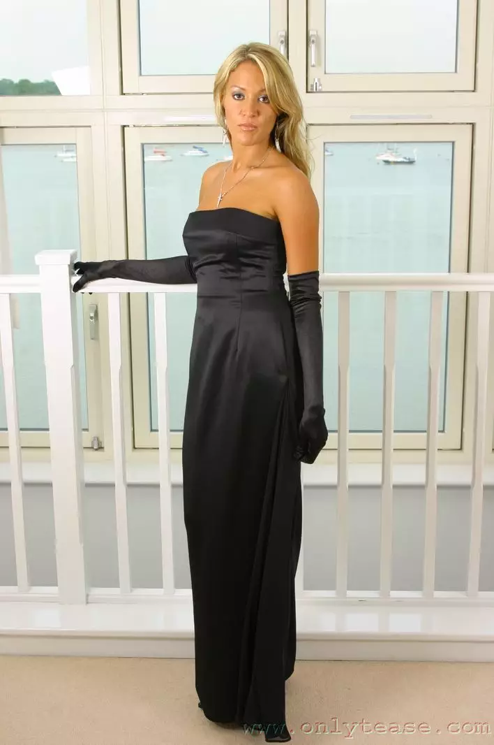 Высокая детка Stephanie S стягивает длинное шелковое платье, чтобы показать горячее белье — Stephanie S