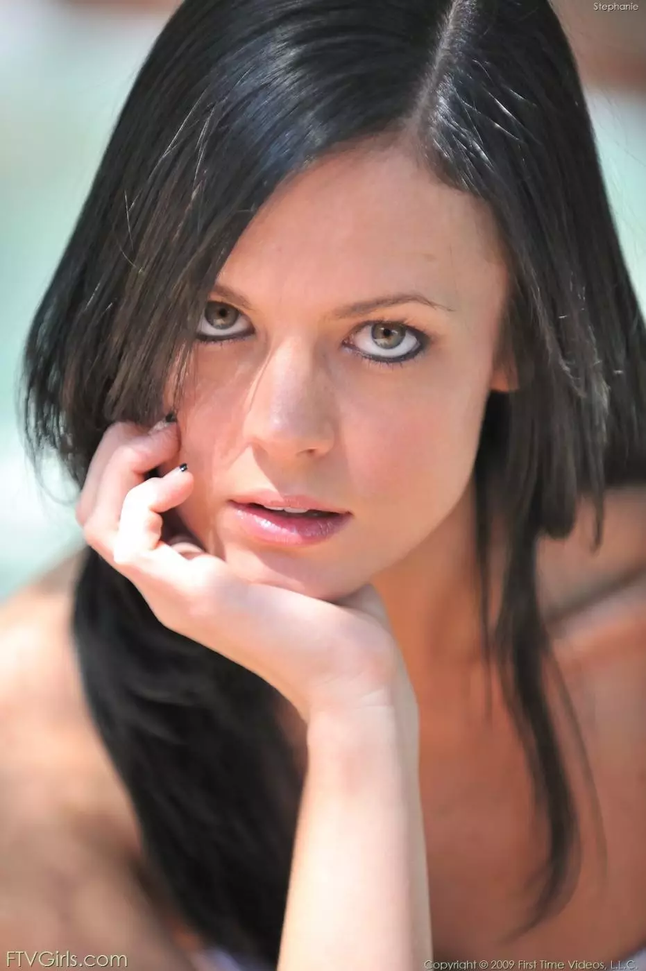 Игривая малолетняя брюнетка Stephanie Sage в платье и стрингах оголяет свою щелку на улице — Stephanie Sage