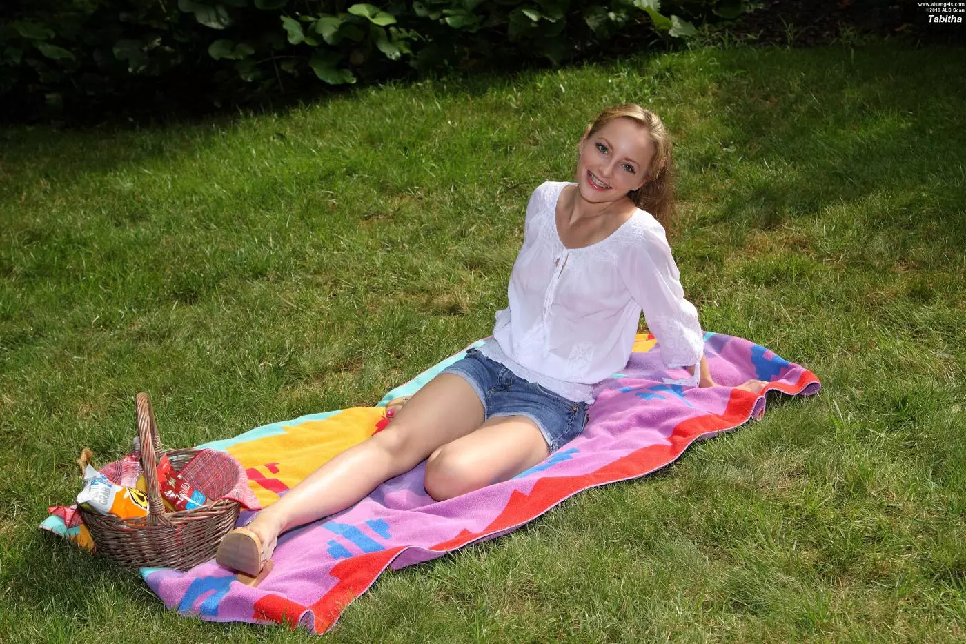 Брюнетка Tabitha Tucker позирует в мокрой блузке, потом раздевается и дрочит киску на улице — Tabitha Tucker
