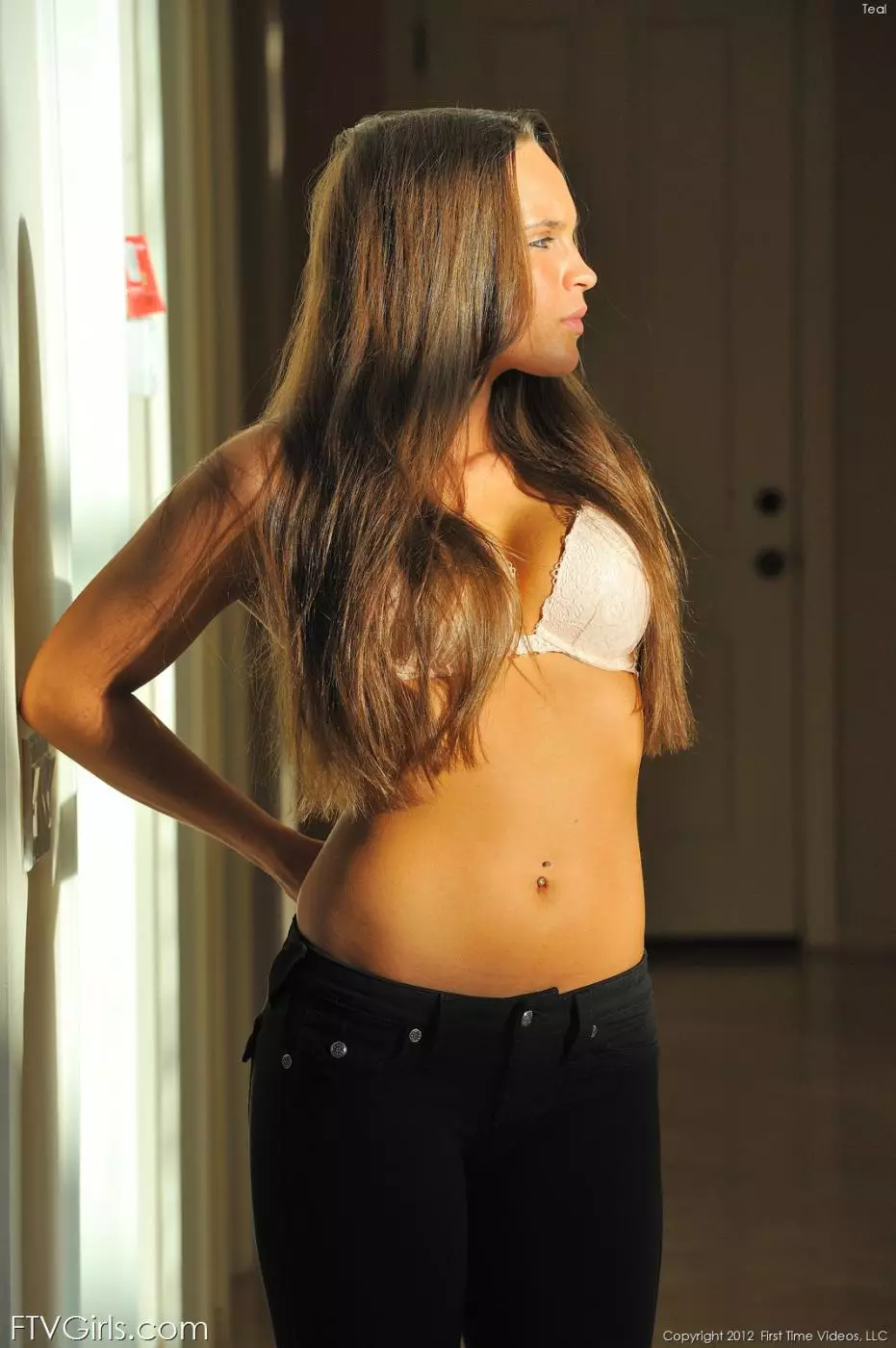 Малолетняя девушка Teal FTV снимает тугие джинсы и заполняет свою любовную лунку бананом — Teal FTV