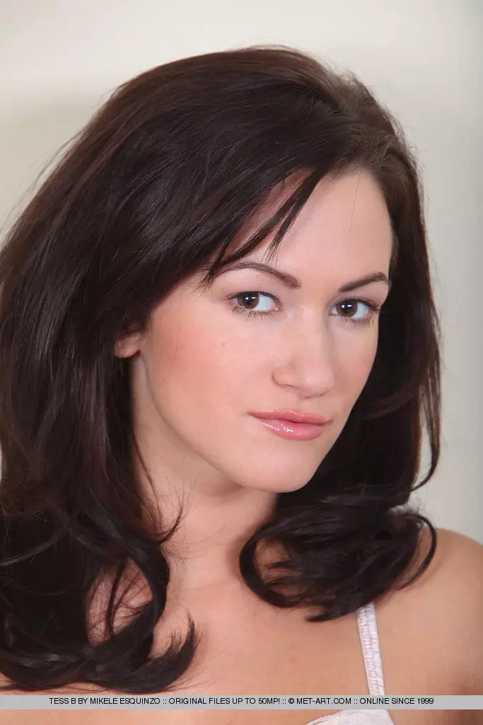Молодая брюнетка с сексуальным телом Tess Nubiles снимает свое белое белье и позирует обнаженной — Tess Nubiles