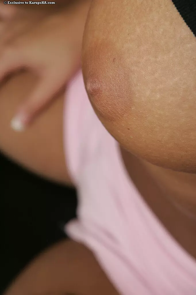 Спортивная малышка с каштановыми волосами - Tiffany Summers, снимает свою черную майку и узкие розовые шортики — Tiffany Summers
