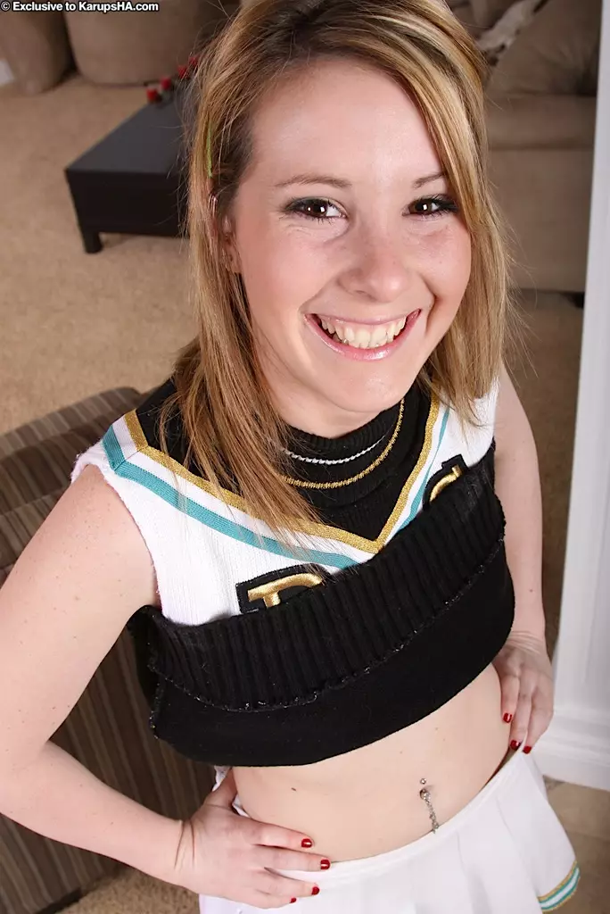 Выбритая малолетка Tweety Valentine снимает форму черлидерши а потом свои девственные белые трусики — Tweety Valentine