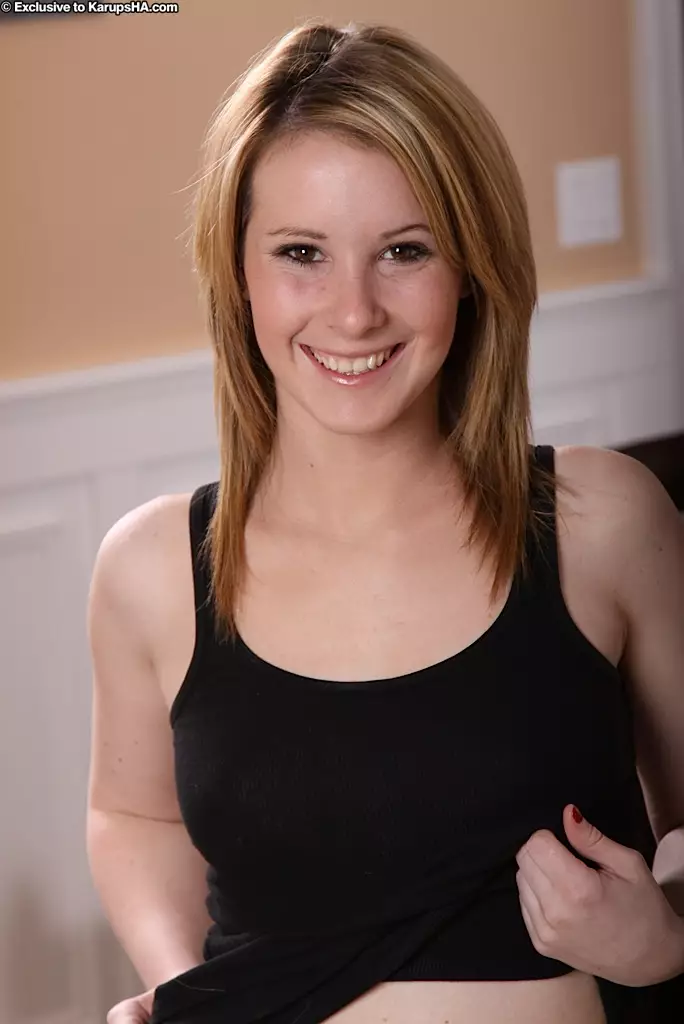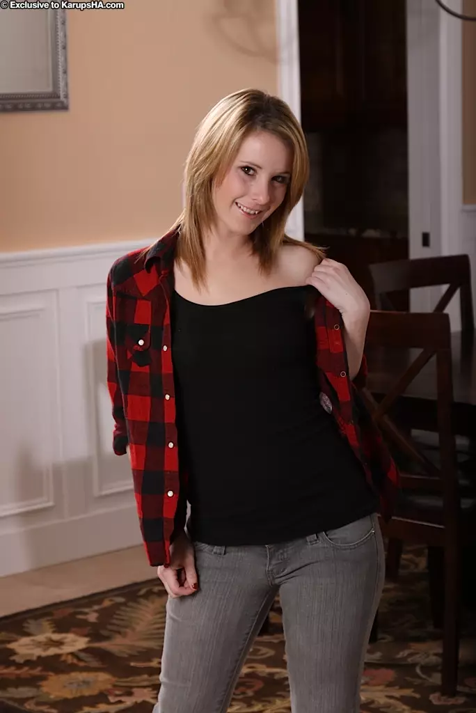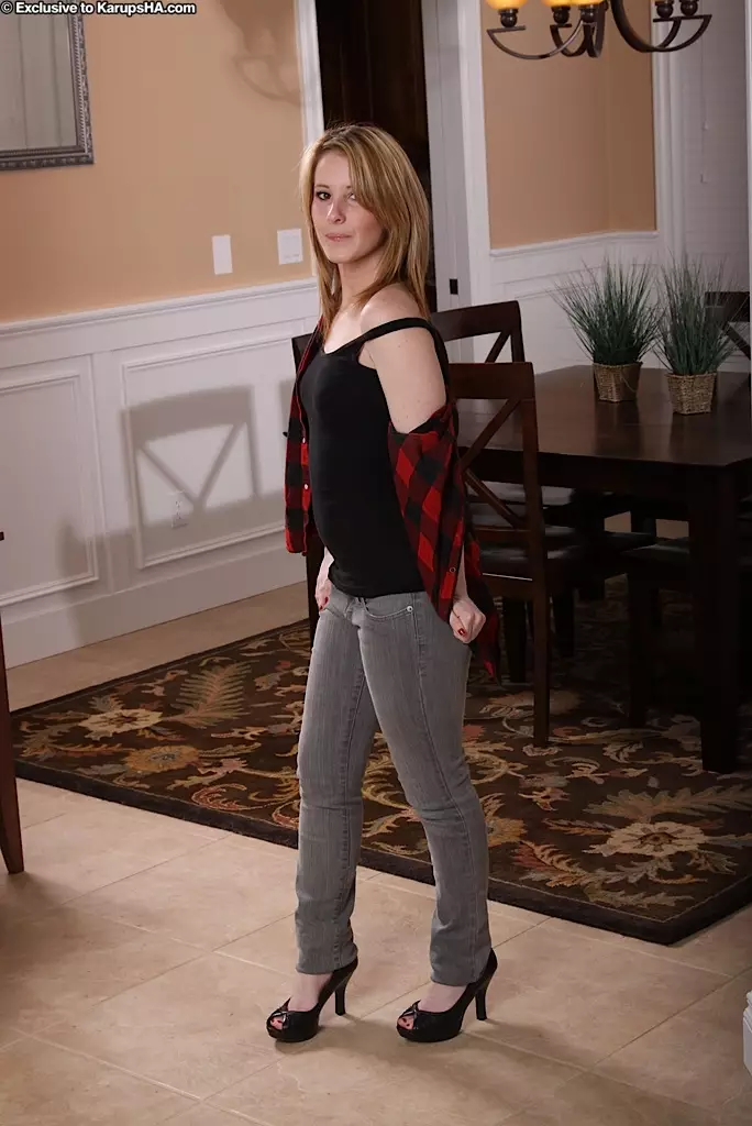 Сексапильная малышка Tweety Valentine с маленькими грудками и голой киской снимает стринги посреди комнаты — Tweety Valentine