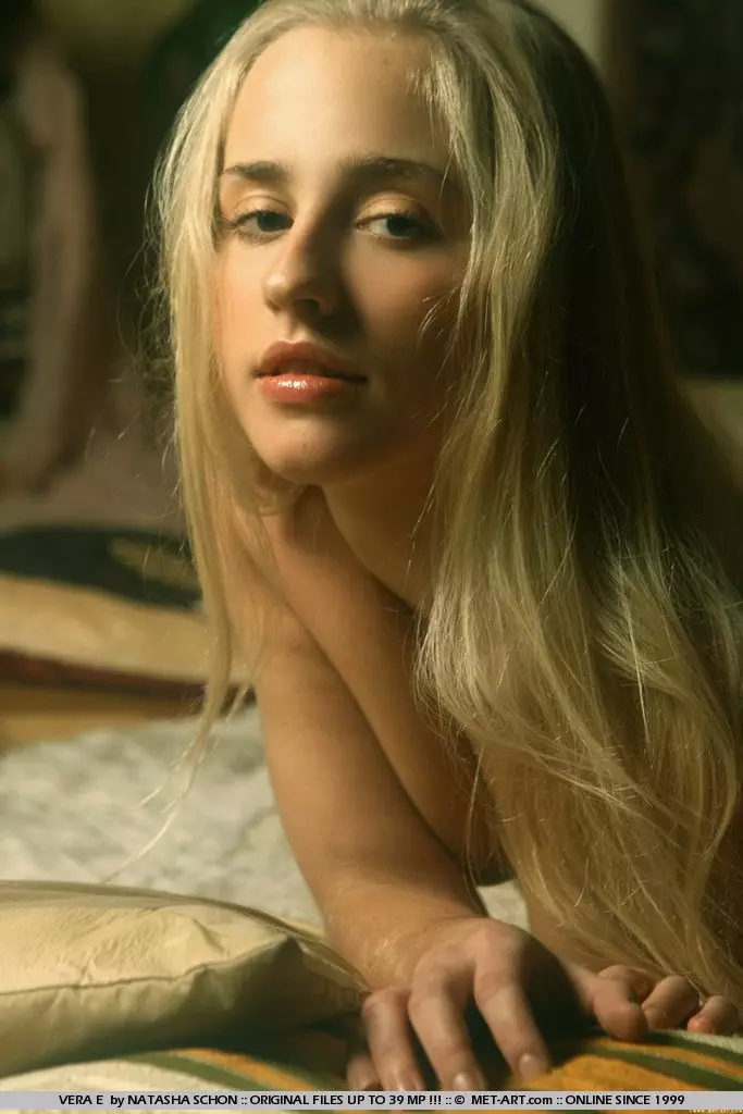 Блондинка-подросток с большой грудью Vera E снимает белье, показывая мягкую кожу — Vera E