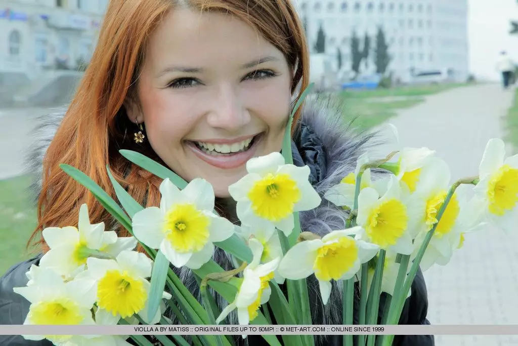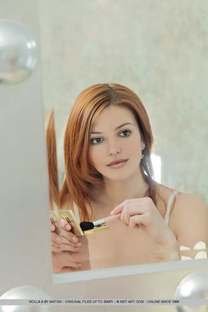 Бледная рыжая девочка-подросток с гладкой киской и большой грудью Violla A позирует абсолютно голой — Violla A