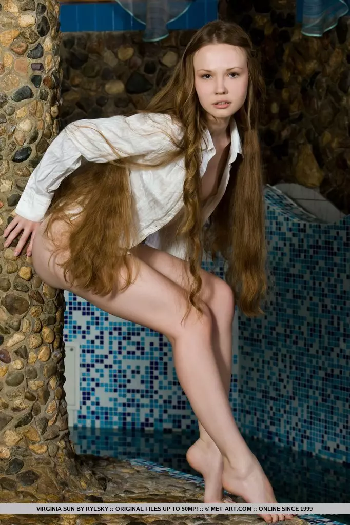 Длинноволосая шлюха Virginia Sun купается в бассейне абсолютно голой — Virginia Sun