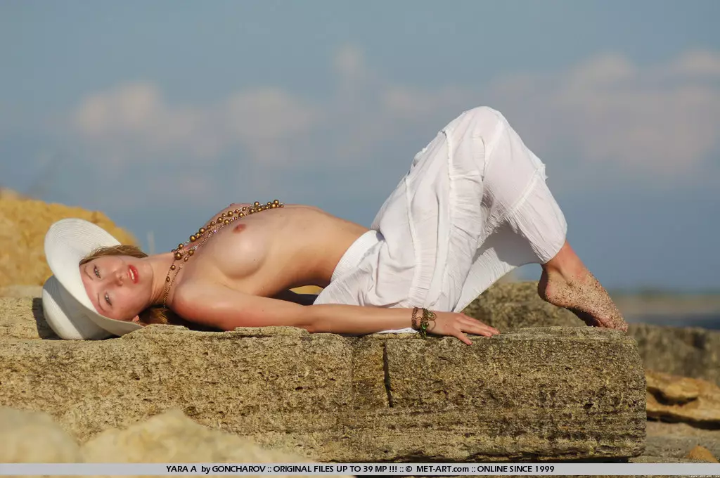 Рыжая девочка-подросток Yara A задирает юбку, показывает голую попку и грудь — Yara A