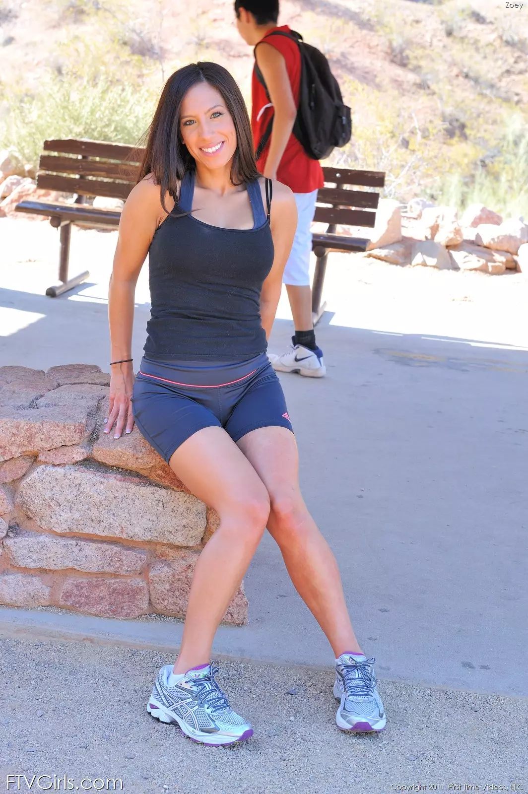 Спортивная брюнетка Zoey FTV стягивает свои стринги прилюдно и разводит ягодицы — Zoey FTV
