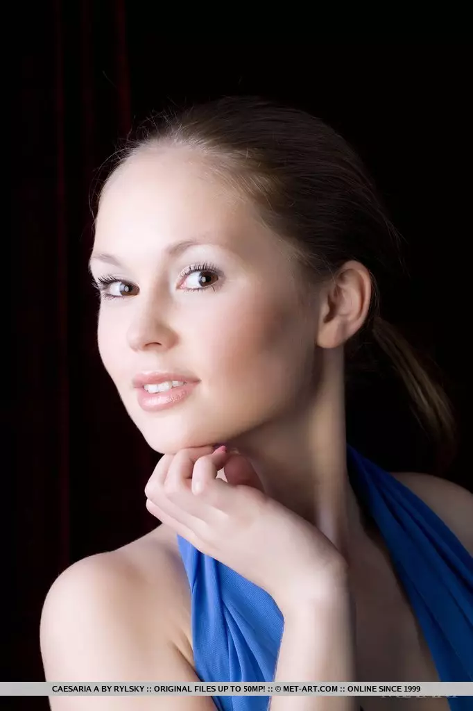 Прекрасная, обнаженная Caesaria A играет с голубым шарфом и своим телом — Caesaria A
