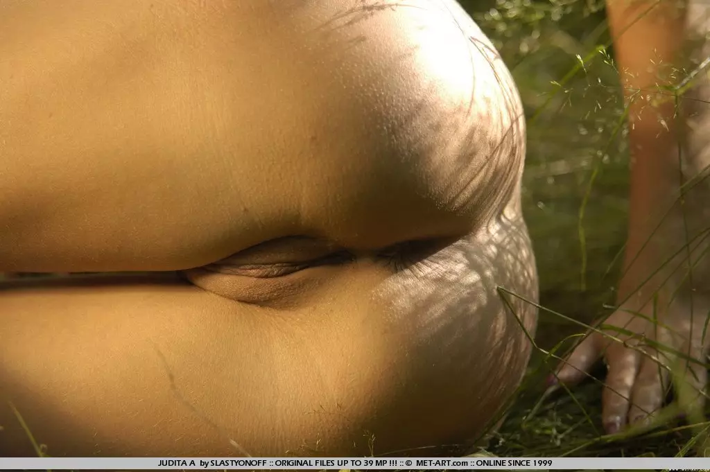 Белокурая девочка Lea Tyron дает рассмотреть свою фирмовую задницу и лысую киску на траве — Lea Tyron