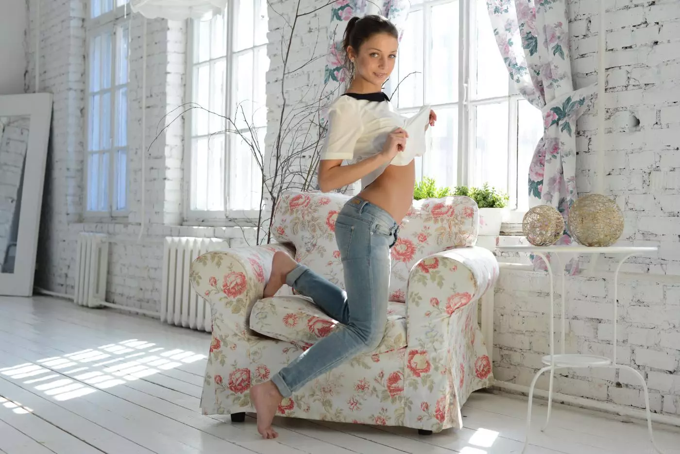 Милая детка Foxi Di снимает джинсы и майку, чтобы показать нам свое аппетитное тело — Foxi Di