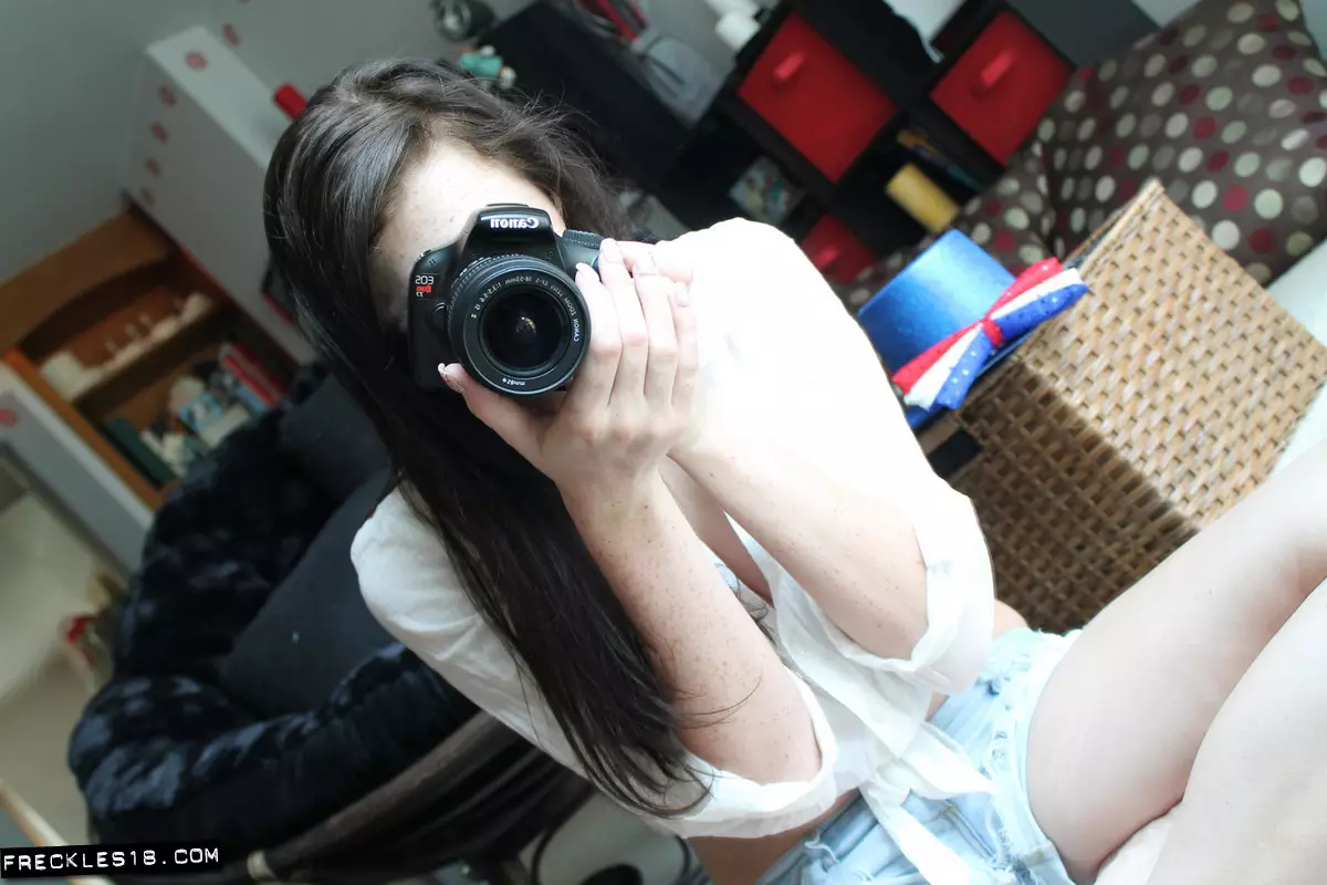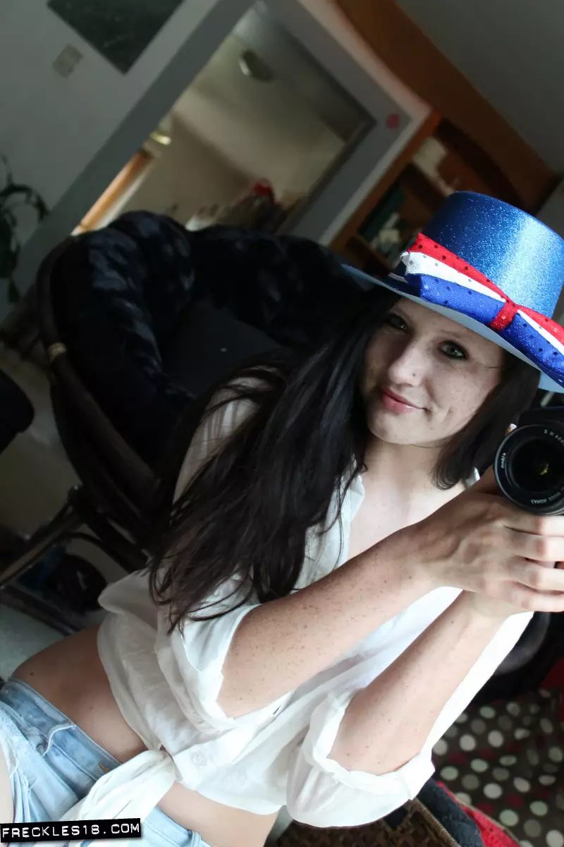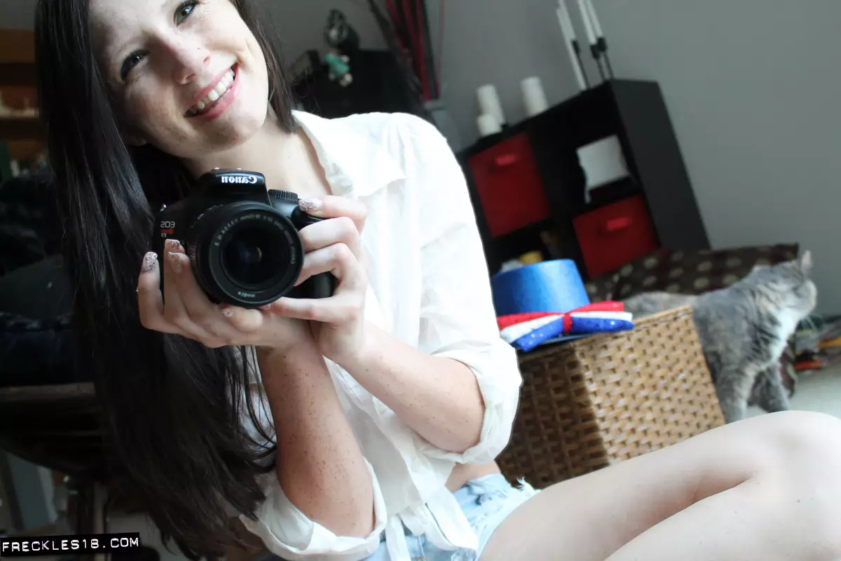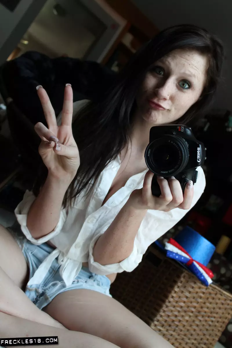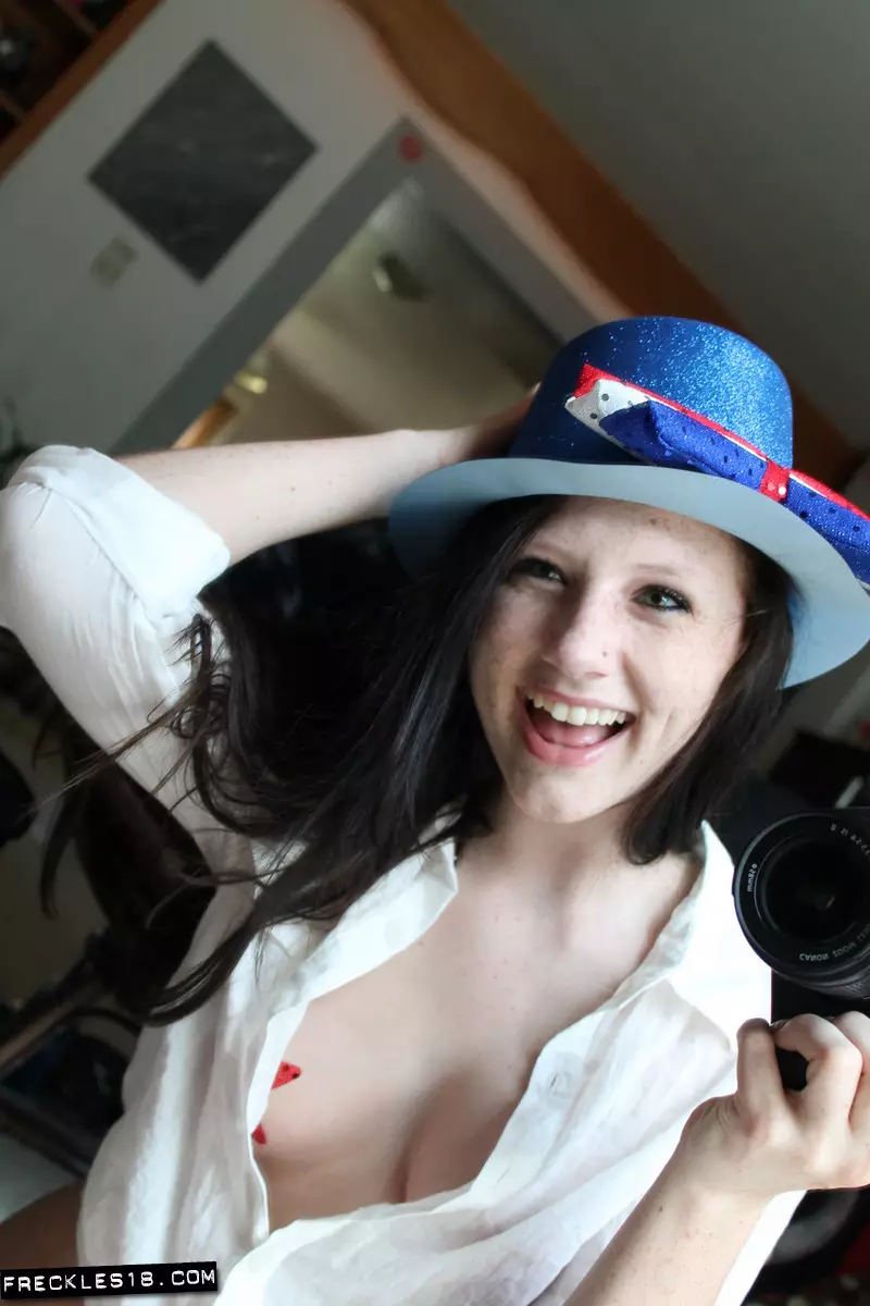 Freckles расстегивает шортики и показывает свои шикарные натуральные сиськи — Freckles