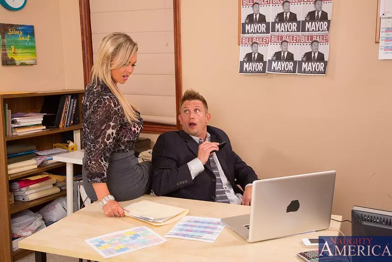 Грудастая офисная красотка в чулках Abbey Brooks трахается с большим членом и трахается хорошо — Abbey Brooks